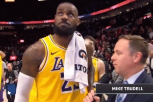 赛后,詹姆斯在场边接受记者采访。里夫斯上前对着镜头说道:“40分,老家伙(Old ass)!”