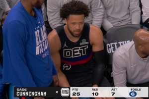 情况不妙!坎宁安被吹防守犯规累计6犯离场 本场砍下25分10板7助