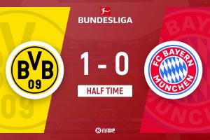 半场-多特1-0拜仁 施洛特贝克头球破门斯文松献助攻埃姆雷詹伤退