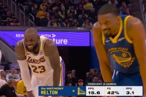活力十足!勇士再度失误被湖人反击 克莱伯上篮不中后詹姆斯补进