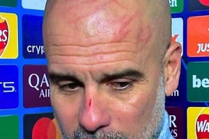 在那场比赛中,曼城下半场连丢3球,最终3-3战平费耶诺德。赛后接受采访时,瓜帅头上布满了伤痕。在新闻发布会上,当记者问及这些伤口时,瓜迪奥拉回答:是我用指甲挠的,我想伤害自己。