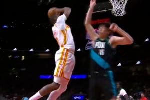小杨成背景板!库明加底线突破起飞 腾空隔扣杨瀚森