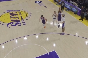 很坚决!海斯防蒙克三分被吹犯规 湖人挑战成功取消犯规拿到球权