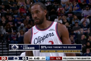 稳!伦纳德本赛季罚球命中率高达91% 上赛季仅81%