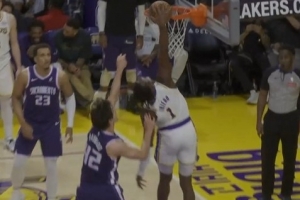 真生猛啊!湖人新秀阿杜·蒂耶罗突破单臂暴扣打成2+1