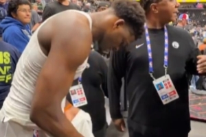 真宠粉!爱德华兹赛后送球衣&鞋&签名&合照!球裤差点脱掉