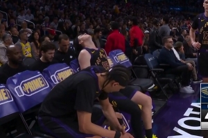 不在状态!里夫斯强攻被帽&4投0中 湖人挑战成功拿回球权