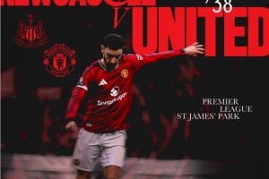 曼联官方晒本轮对阵纽卡海报,队长B费单人出镜