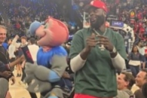 老熟人!史蒂芬森现身快船主场&吉祥物邀请他一起发T恤