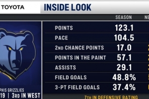 赛前转播方晒出一组灰熊本赛季的场均数据: