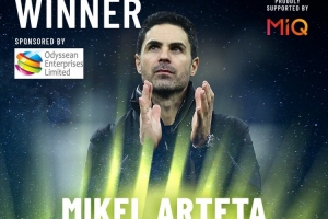 官方:阿尔特塔当选伦敦足球奖年度最佳教练,赖斯当选最佳球员