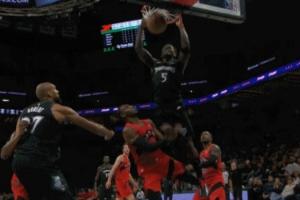 太生猛了!爱德华兹双手隔扣巴雷特手都扣疼了 这手臂太壮了啊!