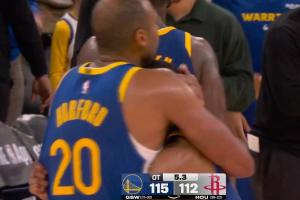 关键球!梅尔顿自投自补打进 与霍福德紧紧相拥 勇士领先3分!