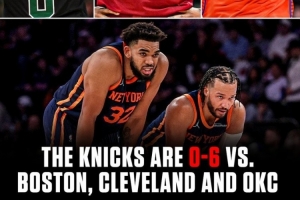值得一提的是,尼克斯本赛季对阵联盟前三骑士、雷霆和凯尔特人时0胜6负未尝一胜。