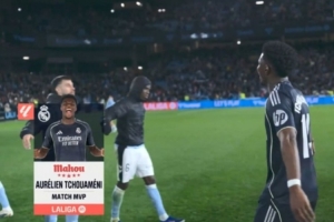 1进球1关键传球!琼阿梅尼当选皇马2-1塞尔塔一役全场最佳