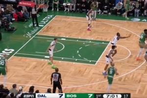 还没开!塔图姆弧顶借掩护三分出手 球偏出较多