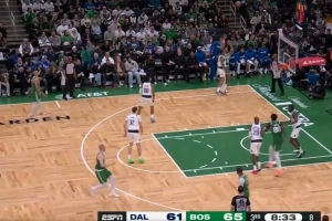 感觉都回来了!塔图姆底角迎着防守命中三分球 个人连拿7分