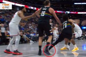 穆雷防守沉退左脚不慎踩到约基奇 脚踝外翻极度痛苦!已回更衣室