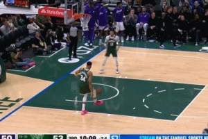 秀上脚法了!字母哥脚踢球给罗林斯发底线球