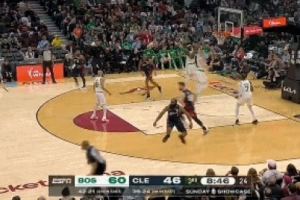 打手了?哈登单挑塔图姆撤步三分不中 蹦着向裁判示意被犯规