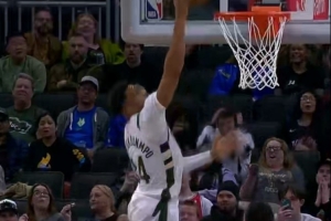 无大碍!字母哥突破上篮时轻微崴脚 随后自扣自补后表情略痛苦