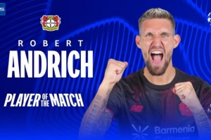打进本队唯一进球!安德里希当选勒沃库森1-1阿森纳一役全场最佳