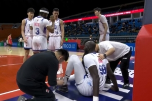 盼无大碍!法尔封盖对手落地时崴脚表情痛苦 随后被替换下场
