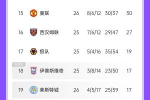 领先降级区13分!曼联先赛与热刺水晶宫同分,仍居英超第15位