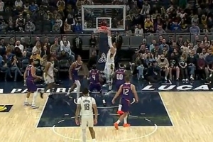 空中轰炸!汤普森送抛传 祖巴茨空接暴扣拿到步行者生涯首分