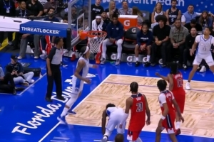 魔术接连伤病!艾萨克空接落地受伤倒地不起 已返回更衣室