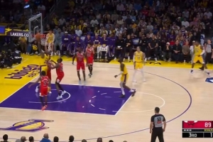 活力十足!詹姆斯篮下1抢3拼到前场篮板 随即补篮得手