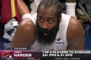 能攻善传!全联盟仅4人场均24+分&8+助 哈登是其中之一