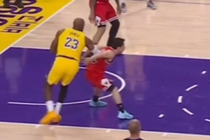 G联盟官方:看看1米7的河村是如何防守2米06高/113公斤重的詹姆斯
