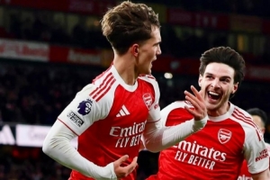 阿森纳中场赖斯社媒晒出庆祝进球的照片,配文:“战斗到底!周二酋长球场见!(欧冠对阵勒沃库森)”
