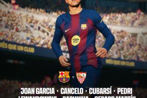 巴萨首发:13-霍安·加西亚、42-哈维·埃斯帕特、2-坎塞洛、5-库巴西、18-赫拉德·马丁、8-佩德里、22-贝尔纳尔、19-巴德吉、20-奥尔莫、9-莱万、11-拉菲尼亚