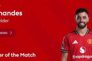 2助攻+6关键传球,英超官方:B费当选曼联3-1维拉全场最佳