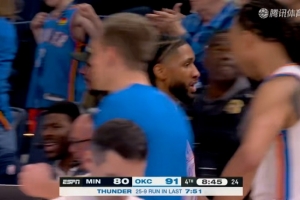 行云流水!雷霆连续展现团队配合打出一波25-9重新领先到两位数