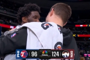 惺惺相惜!约基奇赛后和恩比德拥抱 相互搂着聊了一会