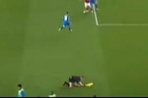 谁干的😅边裁跑动时撞上在边线热身的药厂替补,狼狈摔到场内