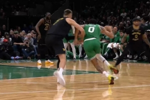 凌波微步!塔图姆弧顶单挑波津 中路突击连续过掉防守上篮打中