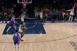 迪文岑佐扑防森萨博被吹三分犯规 回放后改判森萨博踢腿进攻犯规