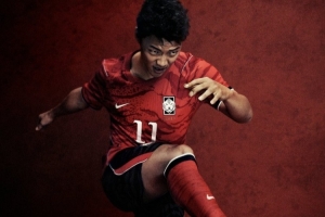 韩国队新款球衣将在3月23日正式发布和亮相,其中主场球衣以“火山红”为主色调,图案设计灵感来源于韩国的山景和虎皮纹理,并配有黑色袖口和带有金色边框的白色耐克标志。
