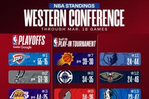 🚨最新排名:西部大乱斗湖人稳第3 狼力压火箭掘金 勇士跌第10