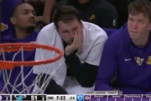 累了吗?东契奇替补席远端静坐手托下巴一脸疲惫