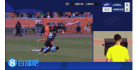 比赛第23分钟,王大雷冲出禁区解围没踢到皮球,但踢翻了对方球员刘鑫瑜,主裁判一开始出示黄牌,随后去场边查看VAR,取消黄牌,将王大雷直红罚下。
