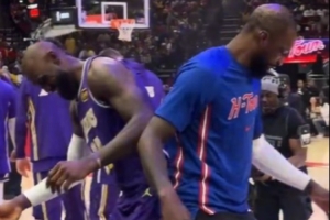 两个老不正经🫣!詹姆斯和杰夫·格林顶臀互动 好不激情