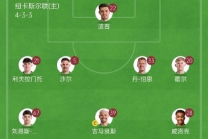 纽卡首发:22-波普、5-法比安-沙尔、20-刘易斯-霍尔、21-利夫拉门托、33-丹-伯恩、23-雅各布-墨菲、28-威洛克、39-吉马良斯、67-麦利、10-安东尼-戈登、14-伊萨克