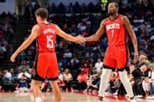 今天第四节最妙的,还不只是谢泼德在场,而且他让小霍勒迪久留场上,火箭一时形成谢泼德+小霍勒迪双卫上线,申京罚球线,杜兰特在底角舒服地投定点。