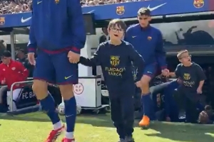 表达关爱!巴萨球员赛前手牵唐氏综合症儿童入场