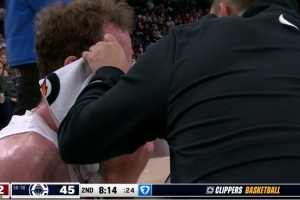 看着都疼!珀尔特尔拼抢被马瑟林击中面部 血流满面